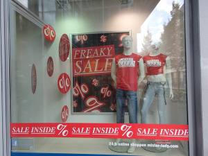 Curious Denglisch #2: The interestingly-named clothes shop, “mister lady”, advertising a “Freaky Sale”, Bahnhofstraße, Nordhausen.